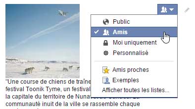 Le premier vous permet de vérifier quelles sont les personnes qui ont accès à cette information (Public, Amis ou plus restreint). S’il s’agit d’une de vos publications, vous pourrez en modifier le cercle de diffusion.