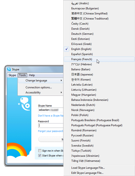 Changer la langue de Skype